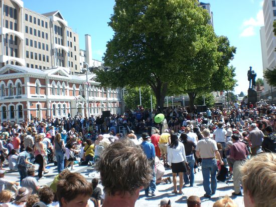 Auf den Plaetzen findet gerade ein Festival statt, wo wir einen Zwischenstopp einlegen und das bunte Treiben beobachten!