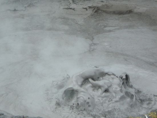 In Rotorua gibt es einen kleinen Park mit ein paar heissen Schlammtuempeln....schon als wir in die Naehe kommen stinkt es hier bestialisch!