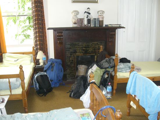 Wir breiten uns im Zimmer aus, denn noch ist keiner da! Doch als die Tuer aufgeht steht ein junger Mann vor uns, der sich uns vorstellt und dann schnurstracks durchs Zimmer geht. Wir machen grosse Augen.. doch dann kapieren auch wir... das ist unser Zimmergenosse!!Wir hatten fest mit nem Maedel gerechnet... aber was solls!!
