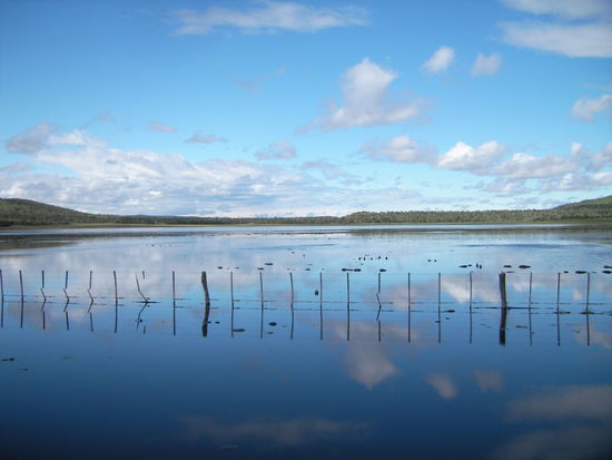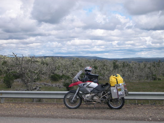 Zirka einhundert Kilometer vor Ushuaia aenderte sich die LAndschaft wieder. Wir kamen an einem See vorbei und im Hintergrund waren wieder schneebedeckte Berge zu sehen. Zwischenzeitlich hatte sich der Himmel auch wieder zugezogen