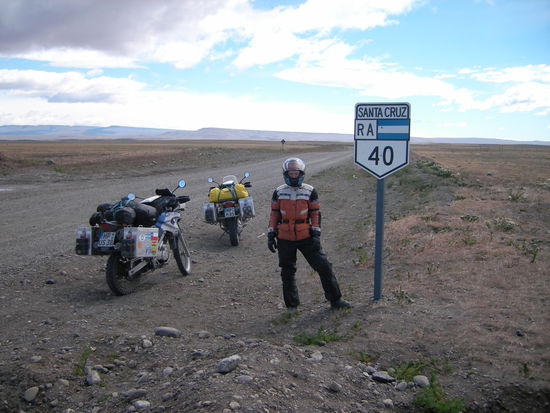 Dank den sparsamen Einspritzmotoren von BMW und den ausreichenden Originaltanks erreichten wir nach 370 Kilomtern El Calafate ohne Probleme. (Wir hatten schon mit Bikern gesprochen deren XT`s und DR`s unter diesen Umstaenden bis zu 10 Litern verbrauchen).