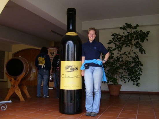 Die erste Bodega (Winzer)Lopez gehoert zu den ganz Grossen im Lande: 1100 Hektar eigene Anbauflaeche, 13 Mio. Liter Wein pro Jahr, Lagerkapazitaet von 44 Mio. Liter....