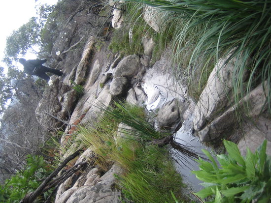 Durch den starken Regen kamen uns unerwartete Wasserfaelle entgegen. Auch kleine Baeche die sich gebildet hatten mussten wir durchqueren, so richtig abenteuermaessig! Gluecklicherweise kam zu diesem Zeitpunkt die Sonne raus so dass wir ab und zu sogar im T shirt laufen konnten