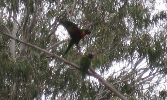 Cool war es auch, dass wie direkt an kleinen Fluessen vorbei gewandert sind und des oefteren mal unter oder ueber umgestuerzte Baeume krackseln mussten. Natur pur eben. Ueber unsere Koepfe hinweg sind dann ganz suesse bunte Papageien geflogen und gegen Spaetnachmittag konnten wir sogar wilde Kanguruhs beobachten (sowie suesse kleine Haeschen). Diese Kanguruhs hatten aber absolut nichts mit denen gemeinsam, die ich streicheln durfte. Tatsaechlich waren die naemlich locker 2 Meter hoch und sehr scheu, obwohl sie in einer Riesengruppe von mindestens 20 Mitgliedern standen. Ausserdem haben wir wirklich alle moeglichen Tiere, Insekten, Planzen usw. von den erfahrenen Wanderern erklaert bekommen. Einen Moment des Schreckens hatte ich dann, als ich gerade unter einem Baumstamm durchkroch und ploetzlich auf der linken Schulter eine riiiiiiesen Spinne entdeckte!!! Wild fuchtelnd konnte ich sie gleucklicherweise vertreiben und alle anderen haben sich koeniglich amuesiert. Tsts...