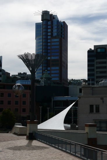 Wir spazierten in Wellington eisschleckend der Hafenpromenade entlang. Es war sonnig und heiss, ein richtig schoener Tag. Viele Leute waren draussen und machten die Promenade mit Rollerblades oder gemieteten Tandemfahrraedern unsicher.