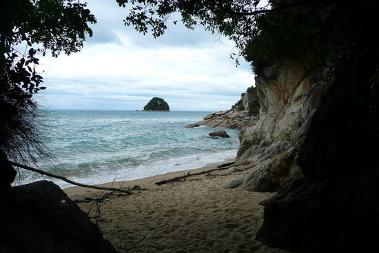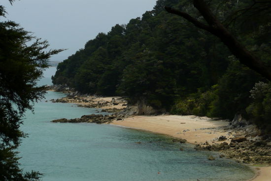 Am naechsten Tag war das Wetter leider nicht mehr so sonnig und klar wie tags zuvor. Es war bedeckt, regnete aber nicht. Wir fuhren mit dem Wassertaxi bis nach Bark Bay, und liefen dort den 7-stuendigen Kuestenweg bis zurueck nach Maharau ab. Es war eine wirklich schoene Wanderung, immer wieder mit Blick auf die Buchten und die goldenen Straende. Was wir etwas schade fanden war der Hochbetrieb, der in den Buchten und auf den Wanderwegen herrschte. Wassertaxis kamen und gingen staendig, um Touristen auf-, und abzuladen. Dadurch herrschte ein staendiger Laerm. Auch die Wanderwege waren von vielen Touristen bevoelkert.