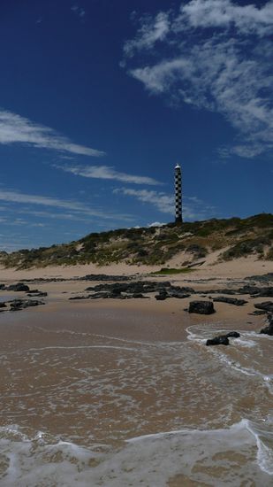 In Dunsborough besuchten wir den Cape Naturaliste, wo sich ein schoener Leuchtturm befindet. Leider muesste man, wie fast ueberall in Australien, fuer die kleinste Sehenswuerdigkeit eine gefuehrte Tour machen. Weil wir nicht so auf gefuehrte Touren stehen, sahen wir uns den Leuchtturm aus der Ferne, von einem Spaziergan aus an. Der Spazierweg fuehrte uns bis an die Kueste, die sehr zerklueftet und wild aussah - aber einfach genial schoen war! Was nicht so genial war, waren hunderte von Fliegen, die uns waehrend des gesamten Spazierganges penetrant um den Kopf flogen, und uns immer ins Gesicht hocken wollten. Mit der Zeit schlugen wir nur noch fluchend um uns, da sie sooo nervig waren! Wir waren dann auch wieder froh, als wir beim Auto angekommen, wieder in einer fliegenloseren Gegend waren .