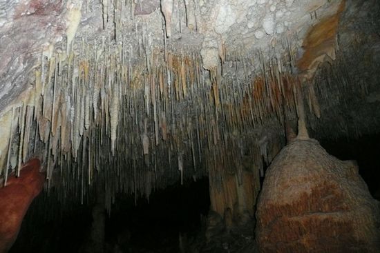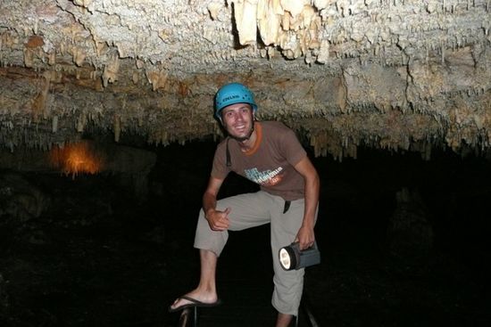 In der Naehe von Yallingup gibt es ein paar verschiedene Tropfsteinhoehlen, die einen Besuch wert sind. So beschlossen wir uns, eine dieser Hoehlen aus der Naehe zu betrachten. Da das Calgardup Cave nicht ausgeleuchtet war, wurde man mit Helm und Taschenlampe ausgeruestet. Los gings hinab ins finstere Cave. Da wir die letzten Besucher des Tages waren, waren wir sogar alleine im Cave! Wir stiegen Treppen hinab und hinauf, duckten uns unter niedrigen Gaenglein hindurch und bestaunten die grossen und kleinen "Tropfsteinzapfen", die von der Decke hingen. Wenn man die Taschenlampe ausloeschte, dann befand man sich in absoluter Finsternis, und hoerte nur das platschen der Wassertropfen, die von den Zapfen auf den Boden fielen.
