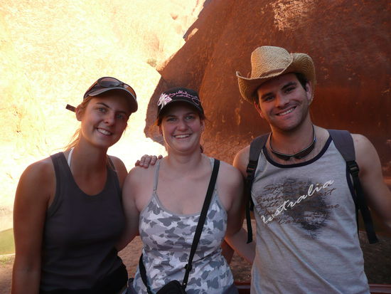 Da der Wind zu stark war, konnten wir nicht auf den Uluru, so machten wir eine 10 km lange Wanderung um ihn. Am Nachmittag besichtigten wir die Olgas (Kata Tjuta) und liessen uns im Tal des Windes von der Sonne braeunen.