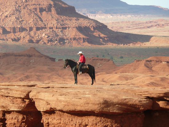 Nach einer Fahrt durch faszinierende Wuestengebiete erreichten wir das Monument Valley,das zum groessten Indianerreservat der USA gehoert und von ueber 200'000 Indianern des Navajo-Stammes bewohnt wird.Mit dem Jeep ging es durch das beeindruckende Indianderreservat.Hier wurde auch die Malboro Werbung aufgenommen.Gerry,unserer Fuehrer erzaehlte und zeigte uns sehr viele,schoene Sachen.Ploetzlich kamen wir in einen Sandsturm.Alles was davonfliegen konnte,mussten wir festhalten.Zum Gloeck kam bald eine Hoehle,wo wir Unterschlupf fanden.Schon bald hoerte es wieder auf.Nach dem Abendessen,setzten wir uns an das Lagerfeuer und Gerry erzaehlte uns bis spaet in die Nacht Geschichten.Kusi und einige von unserer Gruppe,wagten es,die Nacht unter freiem Himmel zu verbringen.Ausgerechnet in dieser Nacht kam ein Gewitter.