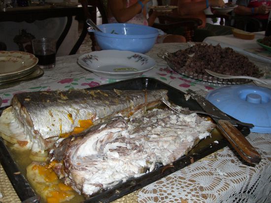 Schnell freundeten wir uns mit ihnen an, und uns zu Ehren gaben sie eine nette Hausparty. Dabei kamen sehr leckere kreolische Gerichte auf den Tisch. Sägefisch, Reis mit schwarzen Bohnen, Grüne Bohnen mit Zwiebel, Malanga, Mangosauce und als Dessert eine Fruchtplatte. Der von uns mitgebrachte Wein und Rum fand guten Zuspruch und somit war die Stimmung entsprechend gut. Diese Menschen haben eine mitreisende Art zu feiern, es wurde gesungen und getanzt. Somit entwickelte sich diese Einladung zu einem schönen und unvergesslichen Erlebnis. Am späten Abend machten wir uns Bett(rum)schwer auf den Weg zu dem gecharterten Bus welcher uns nach Hause brachte.