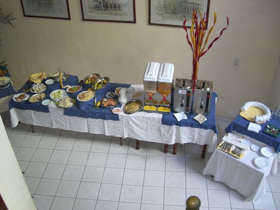 Am nächsten Morgen dann das erste Frühstück. Amerikanisches Buffet. Naja, daß die Amis Pasta mit Schinken und Käse frühstücken habe ich noch nie gehört. Aber es gab ja auch noch Weißbrot, Marmelade und Eier. Der Kaffee erstaunlicherweise wirklich gut für Hotelverhältnisse.