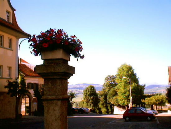 Endlich bin ich in Romont angekommen, nachdem ich unterwegs schon befürchtet hatte, an Hitzschlag sterben zu müssen. Die letzten zehn Kilometer hierher waren zwar fürs Auge recht schön, eine kleine Straße schlängelte sich durch die Landschaft, durch Wiesen und Felder, aber bei dieser Hitze heute ohne Schatten gehen zu müssen war recht hart. Irgendwie habe ich es doch geschafft und bin nach einer kurzen Stadtbesichtigung endlich im Lion dOr in meinem Zimmer.