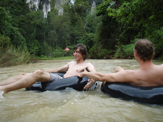 Vorher allerdings sind wir mit alten LKW Reifen den Fluss runter getrieben worden. Nass also von oben und von unten. GEIL. Aber mit Badehose schon fast zu warm.
