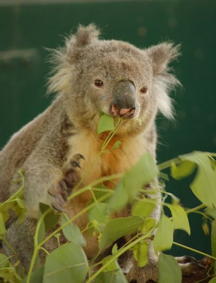 Und die restlichen Stunden verbringt er mit Fressen. Der Koala ernährt sich übrigens ausschließlich von Eukalyptus.