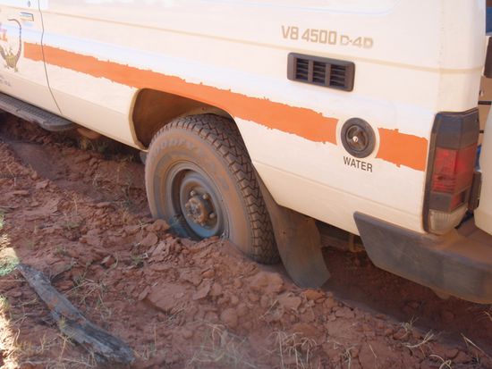 But again we got stucked in the deep river bed and had to dig a lot. Unfortunately, after 3hours of digging and building rails out of tree branches and leaves and also decreasing air from the tyres, we haven't been successful...