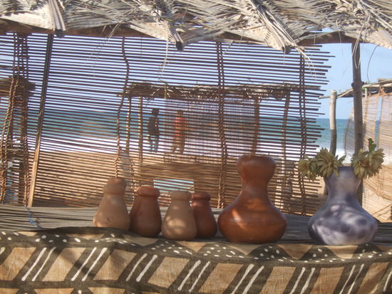 Was mich betrifft: Ich bin in Windeseile nach Hause, denn ich war mit Issa und den Jungs verabredet. Wir wollten an den Strand gehen, Feuer machen, trommeln... Alles war natürlich etwas chaotisch und am Ende ist Rahel nur gekommen um zu sagen, dass sie wieder gehen wird. Also war ich alleine mit Issa und den Watu Wazuri Jungs. "Watu Wazuri" bedeutet auf irgendeiner nigerianischen Sprache "das schöne Volk", und die Jungs (das sind Issa und seine Trommelfreunde) haben ihren Strandbereich so genannt. Dort leben sie, schlafen sie, arbeiten sie. Issa ist Musiker, hat in verschiedenen Trommelgruppen gespielt. Der Verkaufsjob im CPA ist notwendig zum Überleben. Die anderen sind Handwerker, Weber, Töpfer, Näher, Schmuckhersteller, etc. Und außerdem verbindet sie das Trommeln.