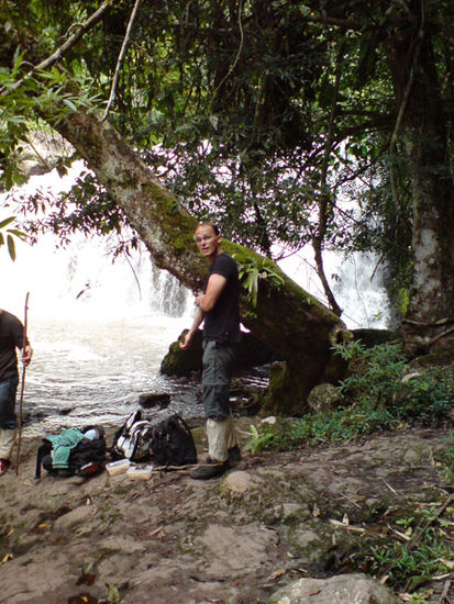 Ich habe ständig nur nach Palmenwedeln zum festhalten gesucht um mich irgendwie auf den Beinen zu halten. Der Boden war total glitschig...ist ja Regenzeit hier. Ab und zu mussten wir auf allen vieren durchs Gestrüpp.