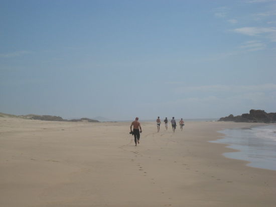 Das Surfen selbst war toll! Es ist sauschwer zu lernen, aber nach fuenf Tagen stand ich schon ganz gut am Brett. Mir tut zwar jeder einzelne Muskel weh, und meine Haut und Haende sind ganz aufgescheuert vom Board. Doch wenn ich mal im Wasser war, konnte ich garnicht mehr aufhoeren. Nach zwei Tagen habe ich dann rausgefunden, dass es mit einem Wetsuit nicht ganz so wehtut. Am dritten Tag sind wir dann zum naechsten Camp gefahren. Dort war es gottseidank ein bisschen relaxter und nicht ganz so viel Party. Und sehr knackige Surfinstructors!! Endlich mal was fuers Auge!!! Die restlichen zwei Naechte verbrachten wir dann dort und sind dann am letzten Tag nach Sydney gebracht worden.