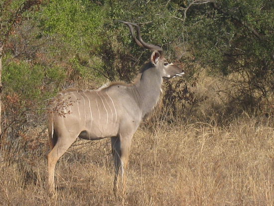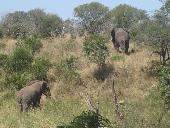 Am naechsten Tag gings dann weiter in den Kruger NP. Dort haben wir dann noch Eine getroffen die schon einen Tag Safari hinter sich hatte. So sassen wir also zu dritt in einem Truck, was sich als ziehmlich bequem herausgestellt hat. Unser Guide fuer diesen Tag war Sam, der war echt klasse. An meinem ersten Safari-Tag habe ich soviele Tiere gesehen. Es war der absolute Hammer. Teilweise sind dir Tiere in Streichelnaehe. Was wenn es sich um einen riesen Elefanten handelt schon ein bisschen angsteinfloessend sein kann.
