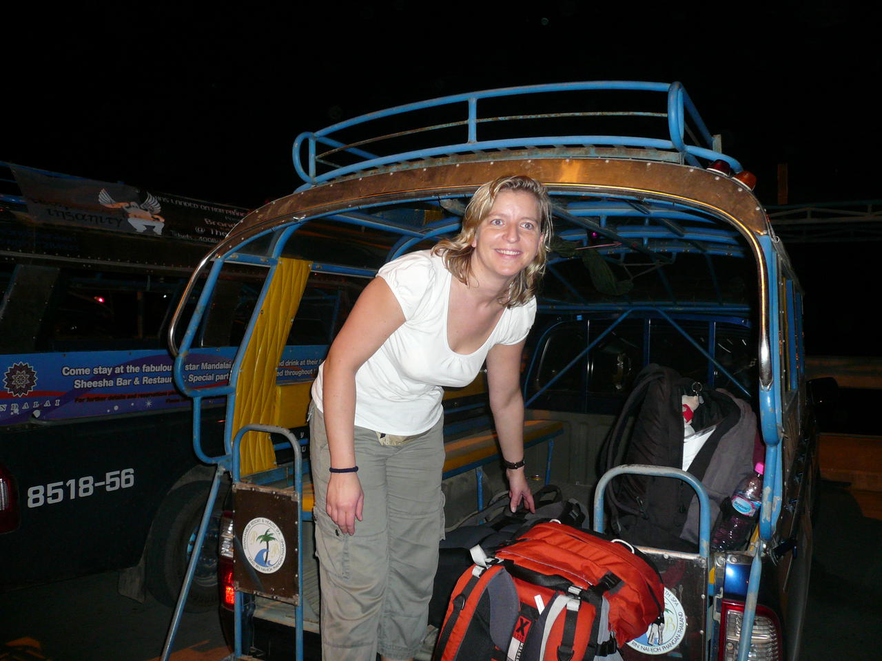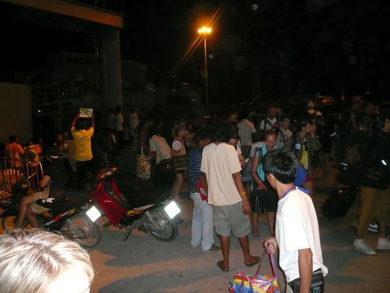 Wir haben ein Taxi gefunden Fuer 200 Baht fahren wir in einem Taxi mit 10 anderen Travellern an den Thong Nai Pan Noi Beach. Mittlerweile ist es stockdunkel und wir haben schon 23 Uhr.
