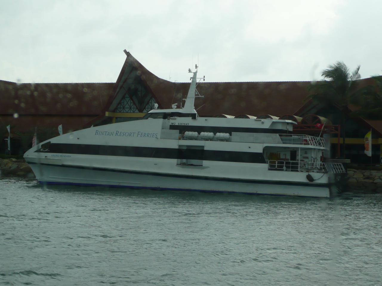 Total gestresst kommen wir am Faehranlager an und erwischen die Faehre fuer um zwei Uhr nach Bintan.