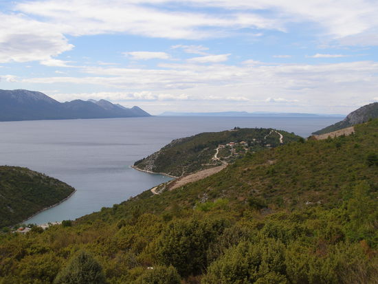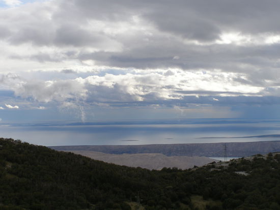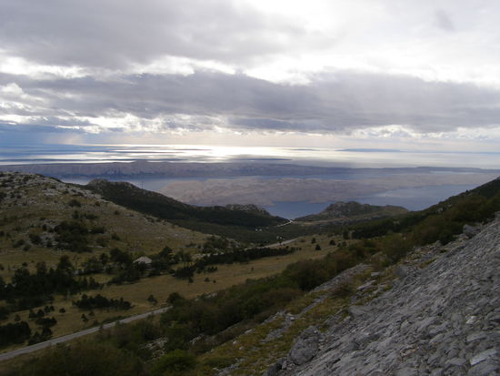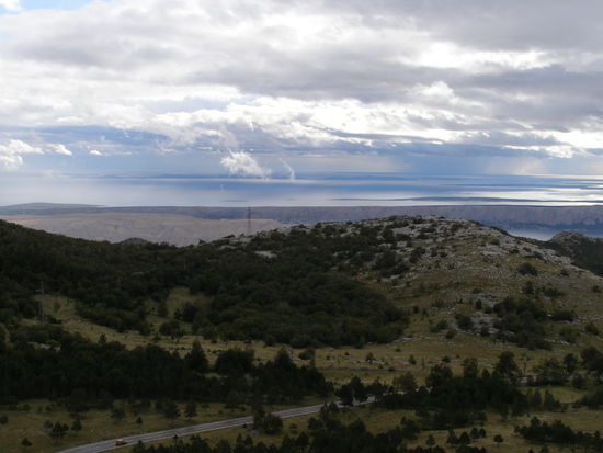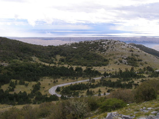 Als ich von Gospic über einen Pass wieder Richtung Meer gefahren bin, wurde das Wetter auf einmal wieder besser. Als Entschädigung gab es eine perfekte Aussicht aufs Meer.