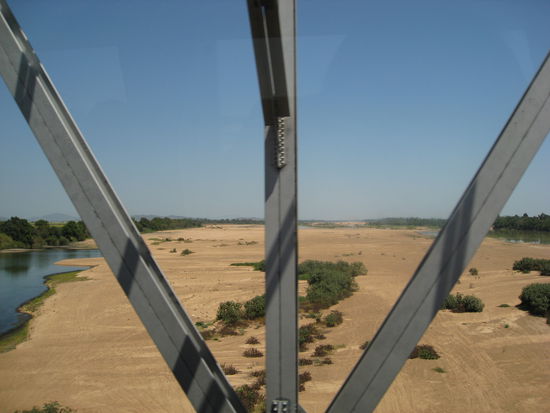 Hier erst einmal ein Bild eines fast ausgetrockneten Flussbettes. Davon gibt es hier sehr viele, durch eines fahre ich jeden Tag zur Arbeit. Allerdings ist das ganz ausgetrocknet und es fuehrt eine ganz offizielle Strasse hindurch.