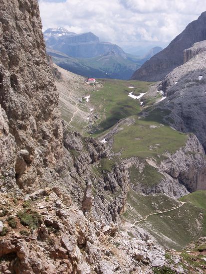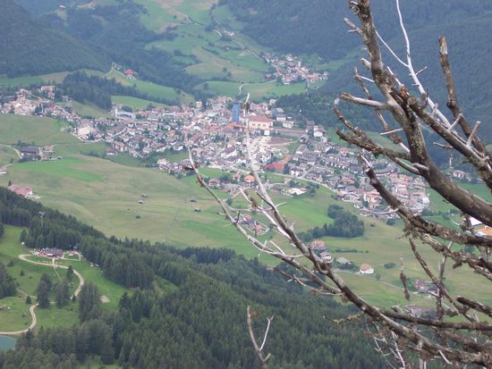 Da es noch nicht sehr spät war ging ich dann die Runde hoch zur Arnika-Hütte. Von dort hat man einen wunderbaren Blick ins 1100m steil darunder liegende Kastelruth.