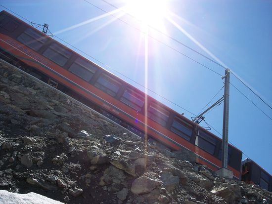 Gleich am nächsten morgen bin ich wieder am Bahnhof. Mit dem berühmten Panoramazug Glacierexpress will ich bis nach Zermatt fahren, kostet 108.- Franken Aufpreis, sie sind es aber allemal wert. Über unzählige Brücken und Viadukte, Tunnels, Passüberquerung und das letzte Stück dann mit einer Zahnradbetribenen Lok, weils so steil bergauf und bergab geht.