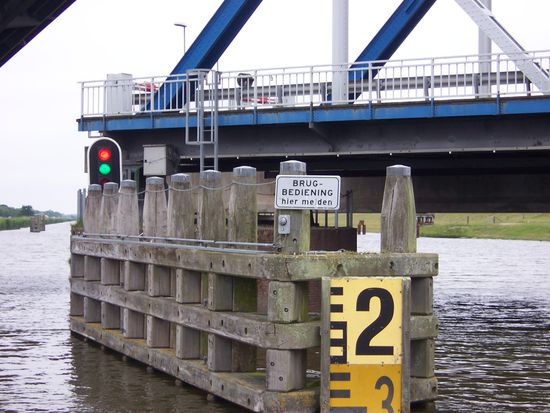 Bereits die erste Straßenbrücke in den Waardkanaal bleibt uns versperrt. Mittagspause!