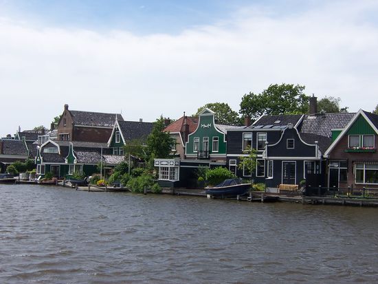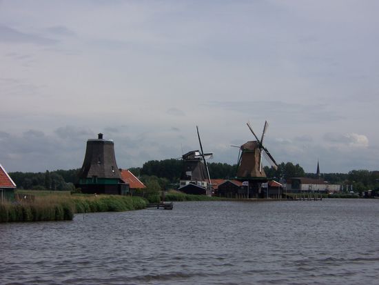 Zaanstreek. Jetzt ist die Fahrt nicht mehr eintönig, denn wir durchfahren ein richtiges Ballungsgebiet. Auffallend viele Kakaofabriken wechseln ab mit Werften und alten und neuen Fabriken.