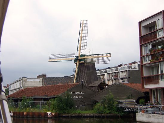 Die Kostverlorenvaart führt mitten durch die Stadt, vorbei an einem Sammelsurium unterschiedlichster Bauwerke. Vom modernen Platenbau über alte Hollandhäuschen, Verfall, einer Windmühle und schönen Herrenhäusern, ist alles vertreten.