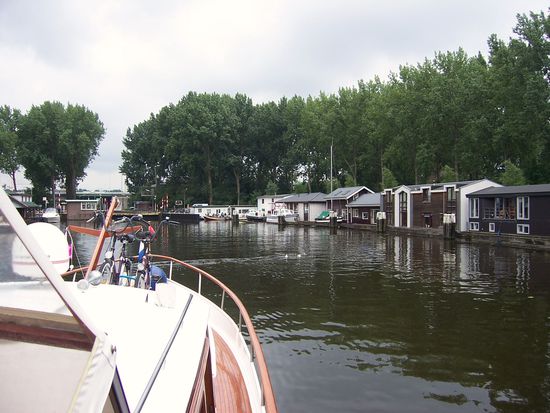 Eine Schleuse in deren Oberwasser eine beeindruckende Zahl von Hausbooten zu Hause ist, bringt uns ins Nieuwe Meer.