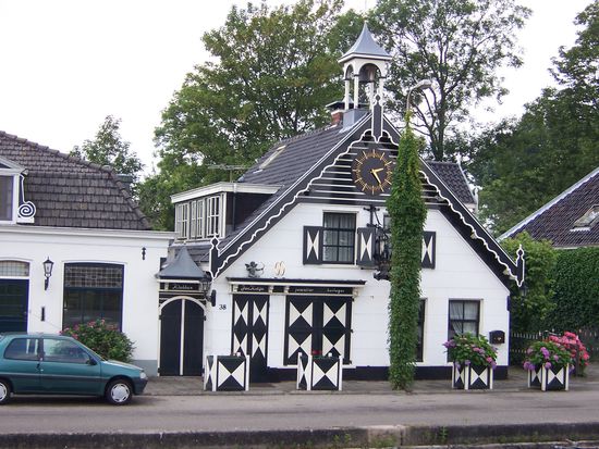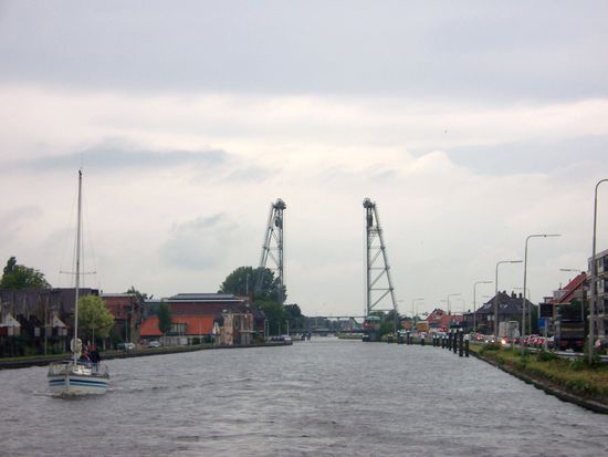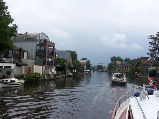 Eine Teststation für Rettungsboote, eine Villa mit Swimmingpool, fantastische Häuser, Kirchen, viele kleine Kneipen mit eigenem Anleger, Hebebrücken, die aussehen wie Fördertürme einer Kohlegrube, eine einzigartige Architektur, die man nur in Holland findet. Manikürte Vorgärten, üppige Blumenpracht, eine Windmühle, die zum Wohnhaus ausgebaut ist, futuristische Wellblechbauten.