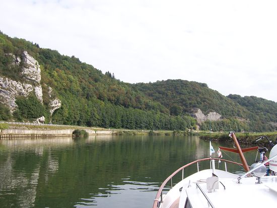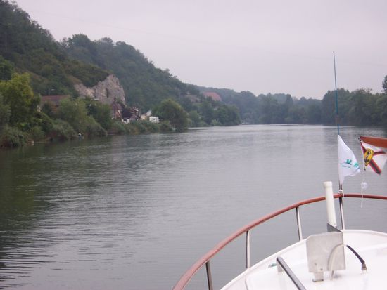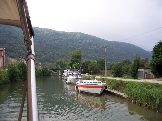Weiter geht es wieder in einem aufregenden, von hohen Felsen gesäumten Teil des Doubs. Auch hier wurden an vielen Schleusen Haltesteiger eingerichtet.