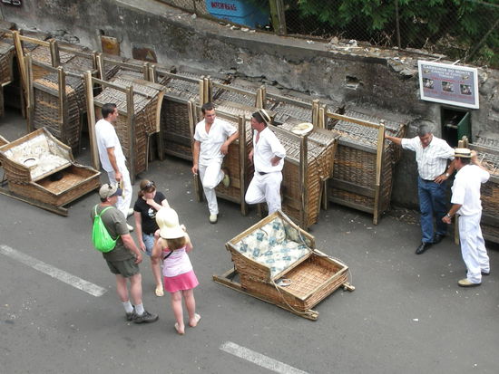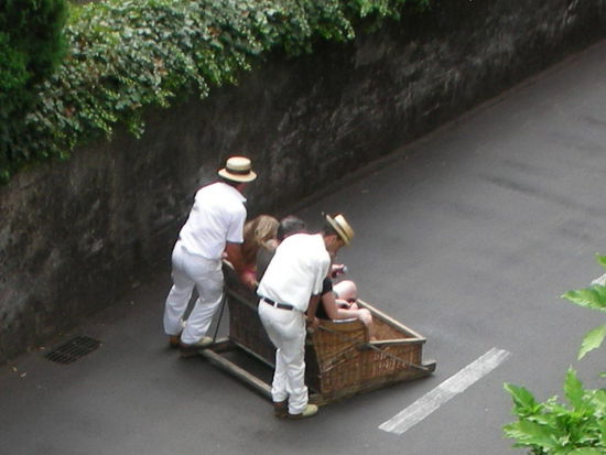 Eine Fahrt hinunter nach Funchal muss mit 40 € pro Korbschlitten bezahlt werden.
