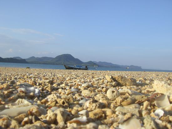 Vor Ko Yao Noi liegt eine kleine Insel, auf die uns Pramot zu einem BBQ eingeladen hat. Wir kauften 1 Kilo Garnelen fuer 100 Baht von einem Fischer der gerade vom Fischfang zurueckgekehrt war.