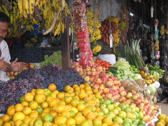 Das Schauspiel reichte von ueppig gruenen Palmenwaelder, ueber weite Reisfelder bis hin zu richtig schoenen Haeusern die das Ufer saeumen. Neben Enten, Gaensen, Ziegen und Kuehen, haben wir sogar einen Elefant gesehen! Einzig ein wenig hektisch kam uns die Mittagspause vor. Meli und ich haben uns wahrscheinlich bereits von der indischen Gemuetlichkeit anstecken lassen. Aber kaum waren wir vom Boot gestiegen, schupste man uns schon fast in das kleine Haeuschen und wies uns an einen Platz zu suchen. Zack, lag vor einem auch schon ein Bananenblatt und weiter gings im Eiltempo mit Schoepfen. Reis, vier Saucen und Dhal (Linsenbrei) sowie Fisch wer haben moechte. Gut, dies war unsere erste Erfahrung mit den Haenden zu essen. Es schmeckte jedoch sehr gut. Aber kaum hat man den letzten bissen heruntergeschluckt, hupte auch schon der Bootsfuehrer zur Weiterfahrt. Das fast gleiche Spiel wiederholte sich am Nachmittag nocheinmal fuer die Teepause. Aussteigen, Tee fassen, Frittierte Bananen und weitere feine Sachen einpacken und ab aufs Boot zurueck. Wahrscheinlich liegt es daran, dass die ganze Fahrt bereits acht Stunden dauert ohne Pausen...