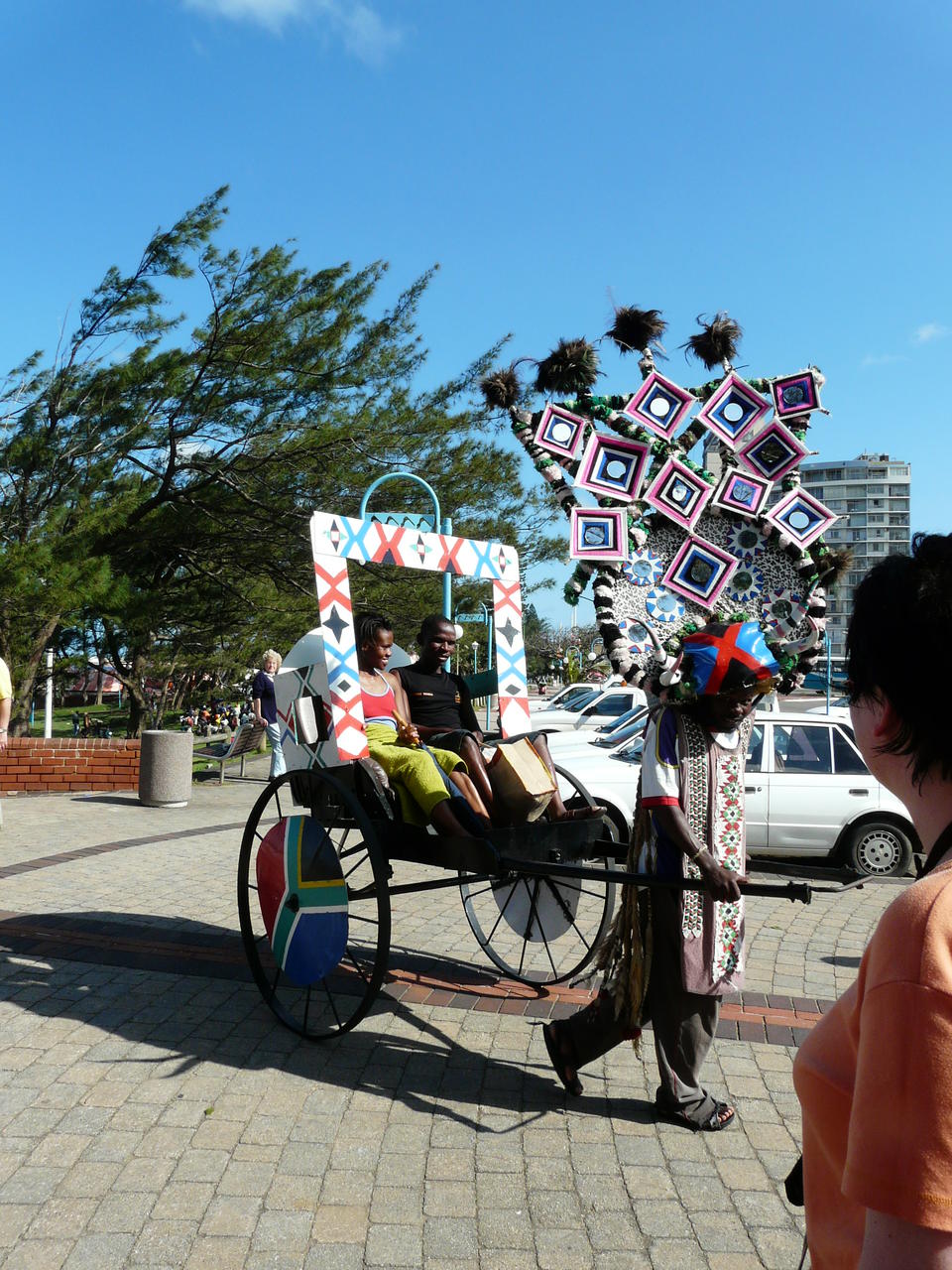 Dort können wir das erste mal den Indischen Ozean ganz aus der Nähe betrachten und legen eine kleine Pause ein. Auch hier am Strand sind wieder Künstler am Werk und es gibt toll geschmückte Rikschafahrer und alle erwarten eine angemessene Bezahlung wenn man auf die Idee kommt ein Bild zu machen. Man darf sich halt nicht erwischen lassen