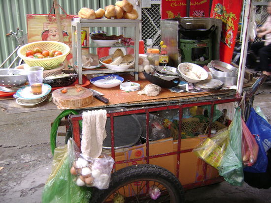 Auch wenn sowas nicht gerade hungrig macht, kehren wir mal wieder ein, um auf andere Gedanken zu kommen . Die Männer haben eh dauernd Hunger und so essen wir die Speisekarten in Saigon rauf und runter- kostet ja nichts