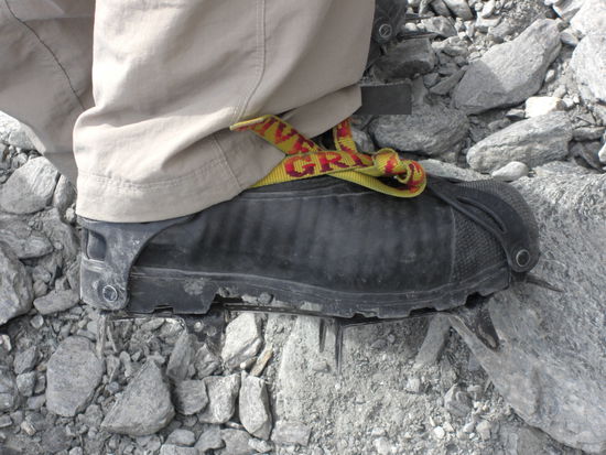 Hier mussten wir erstmal die Steigeisen an unseren Schuhen befestigen.