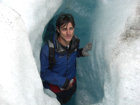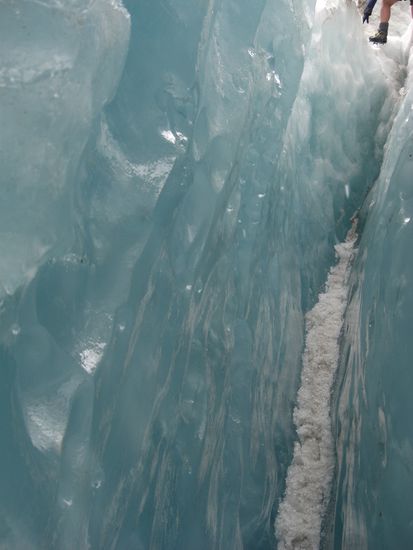 Damit gings dann endlich auf den Gletscher! Ueber Stufen, die die Guides ins Eis schlagen gings dann aufwaerts. Dort wanderten wir durch enge Geltscherspalten und kleinen Eishoehlen und immer umgeben von diesem wunderschoen blau schimmernden Eis. (Leider ist es auf den Fotos nicht so gut zu sehen, war einmalig schoen)