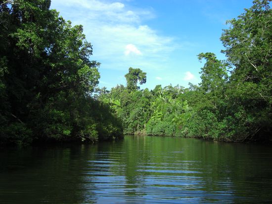 Zurueck in Cairns hab ich noch einen Abstecher zum Cape Tribulation gemacht. Hier im Daintree Nationalpark gibt es Regen- und Mangrovenwaelder, in denen es vor Krokodilen nur so wimmeln soll. Bei der Krokodiltour die ich gemacht hab, haben sich aber nur drei kleine Exemplare gezeigt