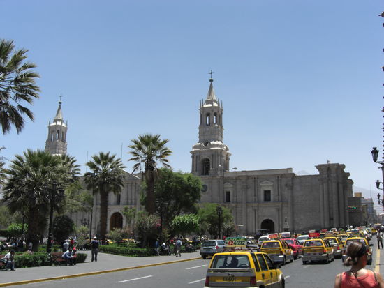 Nach der 10 stuendigen Fahrt mit dem Nachtbus haben wir in Arequipa gleich mal ein nettes Hostel bezogen und uns dann aufgemacht um die Stadt zu besichtigen. Muss sagen es ist wirklich nicht uebertrieben wenn in den Reisefuehrern steht das es die schoenste Stadt in Peru sei. Kein Vergleich zu Lima oder Ica.