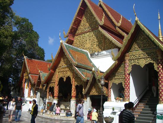 Am naechsten Morgen buchten wir den Flug nach Phuket am 6.1.2008. Mittags ging es zum Wat Doi Suthep der auf ca. 1100 m liegt, und uns einen wunderschoenen Ausblick auf CM bat.