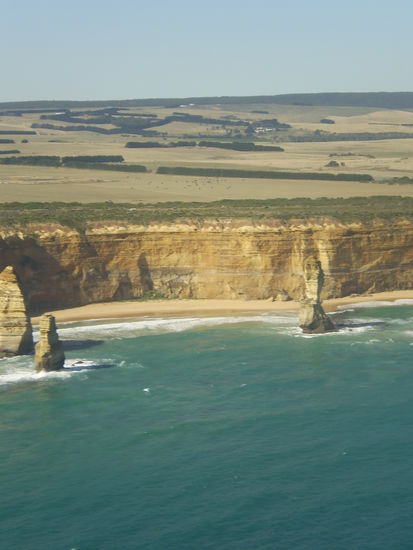 Nachdem aufregenden Flug sind wir dann weiter an die Londonbridge gefahren bzw. an die Stelle an der sie einmal existiert hat. 1990 ist die Bruecke eingebrochen soweit so gut, jeder war froh, dass nichts passiert is. Es wurde ein Hubschrauber aus Melbourne organisisert, der das Paeaerchen, welches noch auf der anderen Seite war, abholen sollte. Als sie wieder sicheren Boden unter den Fuessen hatten, wurden sie bereits von Reportern und einer wuetenden Ehefrau und einem wuetenden Boss empfangen. Der Typ hat naemlich seiner Frau erzaehlt, dass er in die ARbeit geht und seinem Boss, dass er krank zu Hause liegt...