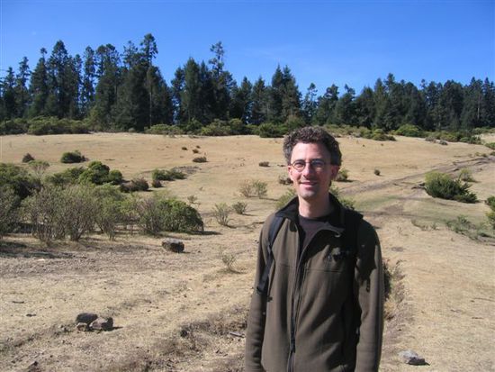 Reto und im Hintergrund die Schmetterlingstrauben an den Fichten.
