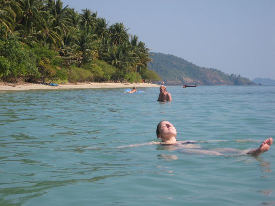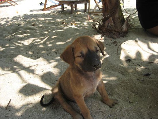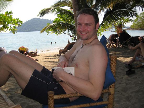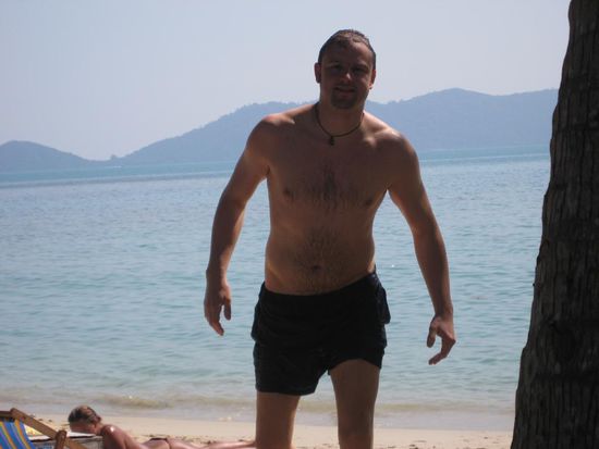 Guten Morgen allerseits! Nachdem ich, wie gesagt, den groessten Teil des gestrigen Tages mit Schlafen verbracht habe,geht es mir heute wesentlich besser.Wach geworden bin ich so gegen 08:00 Uhr. Da Melanie ja erst so spaet ins Bett gekommen ist,war sie noch ziemlich muede. Ich bin dann schon mal runter zum Fruehstueck und habe ordentlich gegessen.Da ich gestern nicht viel runter gekriegt habe, hatte ich heute um so mehr Hunger. Da ich die naechsten Tage Antibiotka nehmen muss, muss ich ein wenig vorsichtig sein mit der Sonne. Nach einem kurzen Abstecher im Internetcafe, die vielen netten Gaestebucheintraege lesen, habe ich Melanie mal wieder (na wohin wohl?) zum Strand gefahren. Ich bin dann erstmal wieder zurueck ins Internetcafe. Melanie rief 20 Minuten spaeter an und bat mich sie wieder abzuholen da sie Bauchschmerzen hatte. Also wieder aufs Moped, zum Strand, Zum GH, aufs WC und wieder zum Strand. Ich hatte keine Lust wieder loszufahren und habe mich dann in den Schatten gesetzt und ein bisschen gelesen. Da Melanie sich zum Gebutstag eine Umfangreiche Spa Behandlung von mir gewuenscht hat, wurde es Zeit nach einem geeignetem Spa zu suchen. Dort haben wir jetzt fuer die naechsten 2 Tage verschiedene Behandlungen fuer sie gebucht. Morgen, Dienstag, gehts los mit einem Honig-Sesam- Peeling gefolgt von einer Manikuere und einer Pedikuere. Am Mittwoch dann eine Ajuveda Massage gefolgt von einer Gesichts-und Kopfmassage mit "Ear Candles". Was auch immer das sein mag. Jetzt sitzen wir hier im Nature Beach Resort, haben lecker gegessen und liegen noch ein wenig in der Haengematte. Nun sind wir wieder im GH, haben uns geduscht und uns unten auf die Terasse gelegt um ein bisschen zu lesen. Dann kamen Tina und Marko von einem kleinen Besuch im Nachbar Restaurant zurueck. Wir haben dann zusammen gegessen und Melanie hat endlich ihr Massaman Curry bekommen das sie schon lange sucht. Danach haben wir uns noch ein bisschen unterhalten und sind zeitig ins Bett.