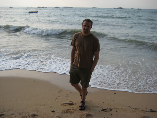Ja ich weiss... hoert sich komisch an ist aber so. Da wir diesmal noch mehr mit oeffentlichen Verkersmitteln fahren wollten als sonst haben wir uns entschieden keine Tour ab der Khao San Road zu buchen, sondern mit dem Linienbus zu fahren. Bis zun Eastern Bus Terminal haben wir uns dann noch von einem Taxi fahren lassen und uns dort dann eine Fahrkarte fuer den A/c Bus gekauft. Non A/C waere uns zwar lieber gewesen gabs aber leider nicht. Also rein in den auf 10 Grad runtergekuehlten Bus und los gings. Nach ca. 2,5 Stunden Fahrt, lauter Karaoke Musik aus dem ueblichen Fernseher und eingefrorenen Extremitaeten kamen wir dann am Pattaya Bus Terminal an. Dort haben wir uns dann ein Taxi genommen welches uns zur Soi (Strasse) 7 fahren sollte. Leider ist Pattaya in 2 Hauptorte aufgeteilt. Einmal der Jomtien Beach mit hauptsaechlich deutschen Touris und der Hauptort mit Russen und Englaendern! Wir wollten zum Jomtienbeach.... und jetzt ratet mal wo wir abgesetzt wurden... . Das wir im falschen Ort waren merkten wir leider erst nachdem wir schon 15 Minuten bei 30 Grad in die Soi 7 hochgelaufen sind. Also wieder durchgefragt neues Taxi, diesmal richtiger Ort und endlich das Guesthouse gefunden welches wir uns im Reisefuehrer ausgesucht haben. Mit 12 Euro zwar nicht billig aber dafuer unter deutscher Leitung. Da wir noch einige Tips fuer die Weiterreise brauchten war das von Vorteil. Nachdem wir uns dann frisch gemacht haben sind wir runter zum Strand gelaufen. Ein schmaler, grober Sandstrand. Sonnenschirme in 3er Reihen und ein kleines Stueck von ca 20 m Breite ist von Sonnenschirmen verschont geblieben. Unter dem Schirmdach war es ungelogen unmoeglich auch nur einen einzigen Sonnestrahl abzubekommen da diese ueberlappend angebracht waren. (Fuer Englaender wahrscheinlich genau das richtige). Dort haben wir uns kurz hingesetzt und versucht uns zu entspannen. Da direkt hinter uns eine 4 spurige, vielbefahrene Strasse war, klappte dies leider auch nicht. Also wieder in Taxi und ab in den Hauptort. Eine Bar neben der anderen. Ueberall laute Musik, leichte Maedels und dicke Maenner zwischen 35 und 80! Fast jeder Touri hatte eine Asiatin im Arm und schlenderte ueber die Strasse. Ich habe wirklich angestrengt gesucht aber waerend der ganzen Zeit maximal 10 "normale" Paerchen gesehen. Naja ich erspare euch den Rest. Nachdem wir uns das Spielchen lange genug angeschaut haben wollten wir zurueck zum Hotel. Auch das gestaltete sich extrem schwierig da die Taxis die tagsueber immer fuer 30 cent zwischen den beiden Orten hin und her fahren tun sie das abends wohl nur wenn der Bus voll ist! Das merkten wir aber erst als er uns fragte wo wir den hin wollen. Lange Rede kurzer Sinn die Rueckfahrt dauerte auch nochmal gut 1 Stunde anstatt 10 Minuten. Endlich zurueck im Hotel gings dann auch schnell ins Bett, da wir uns den Wecker fuer 0830 stellen wollten. Im Reisefuehrer haben wir gelesen das so gegen 1000 ein Bus Richtung Trat fahren sollte.